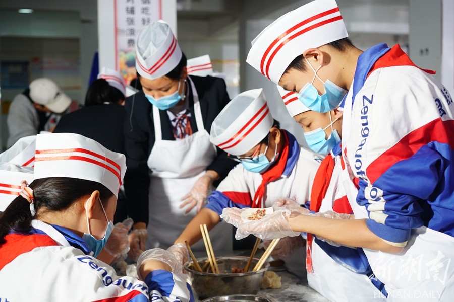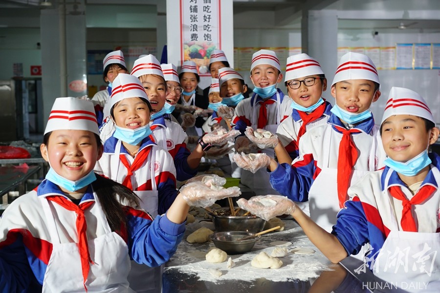 11月4日,双峰县曾国藩学校,孩子们在学习包饺子。