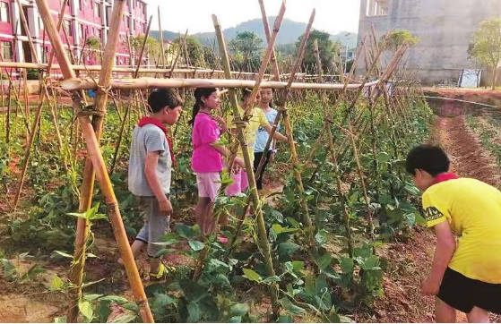 课余时间,同学们在劳动教育基地开展劳动实践课