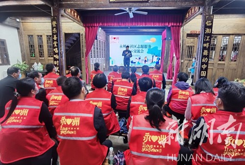 湖南日报·新湖南客户端11月3日讯(通讯员 伍岳)11月2日上午,永州市创建办、共青团永州市委在冷水滩区伍家院社区举办社区志愿服务展示交流会。