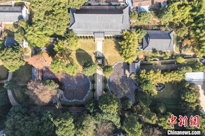 图为航拍江西抚州王安石纪念馆。该纪念馆占地20亩,是一座仿宋园林式建筑群。 刘力鑫 摄