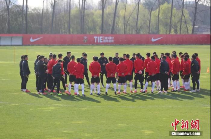 资料图:40强赛下半程开始前,李铁率队在国内集训。张亨伟 摄