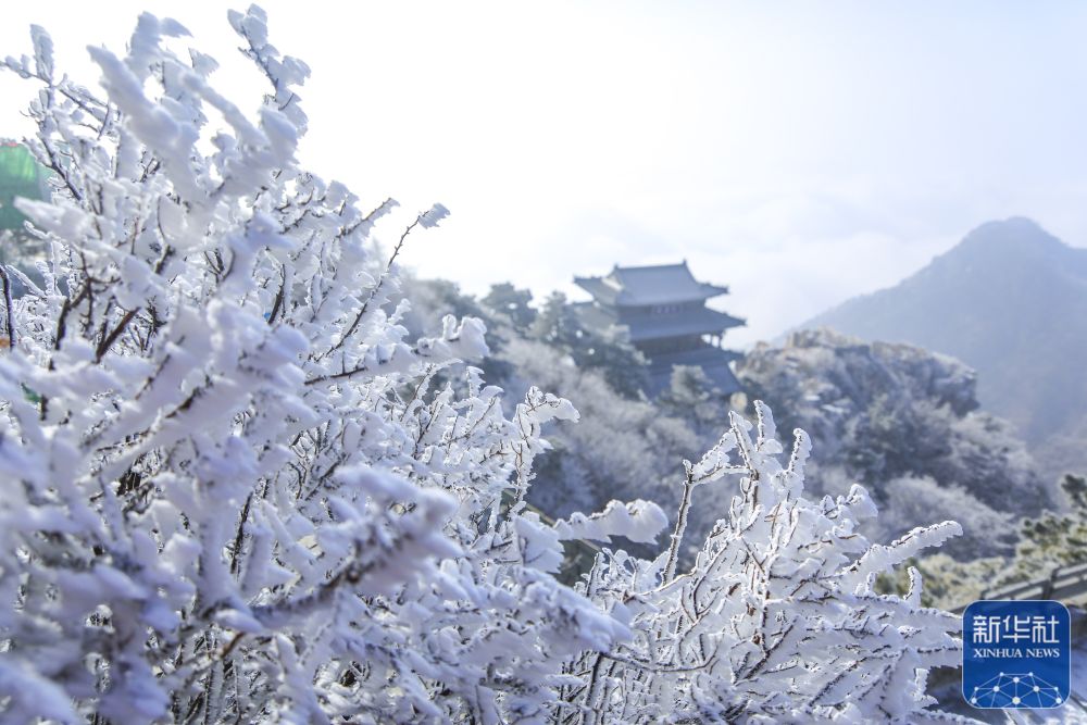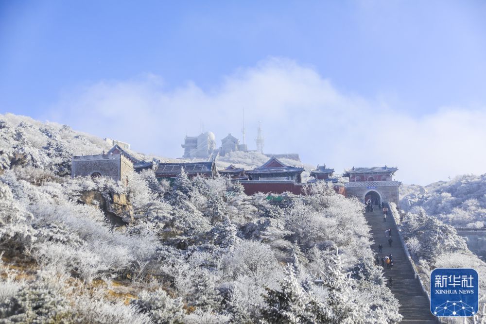 受近期持续低温及大雾天气影响,泰山景区出现雾凇景观。