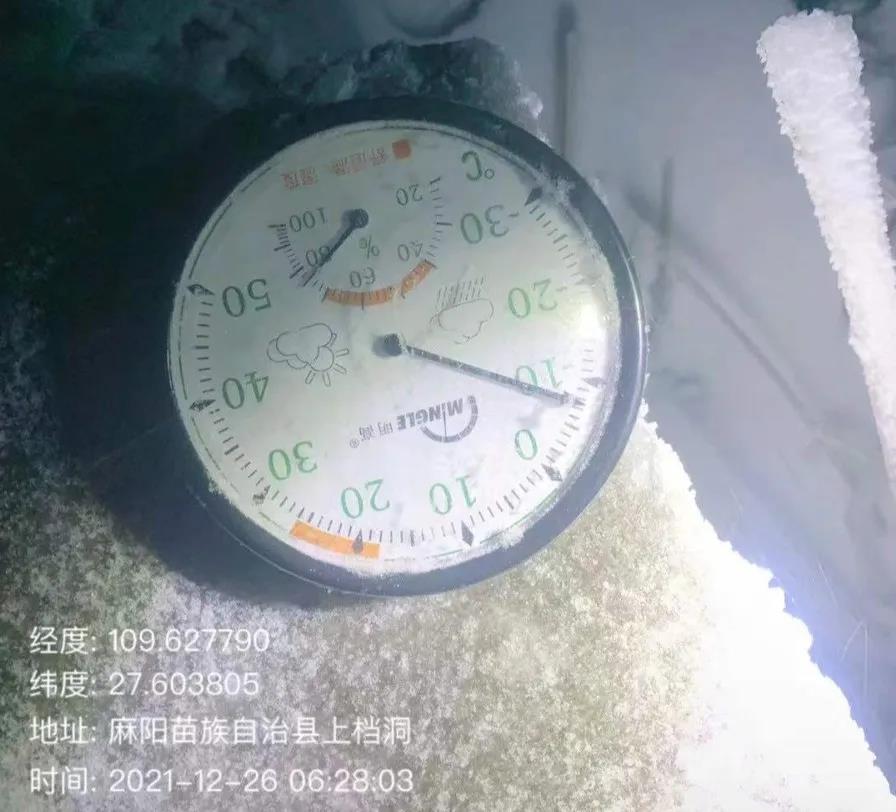 12月26日,国网怀化供电公司输电检修公司运检工李海红在1420米海拔的麻阳苗族自治县西晃山上监测冰情。