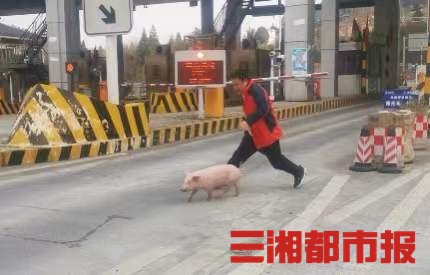 三湘都市报·新湖南客户端12月24 日讯 (全媒体记者 和婷婷 通讯员 吴婷)12月23日上午11时,S99龙吉高速古丈中心收费站,一只小猪仔在入口车道肆意穿行,甚是嚣张。其后,两名手持扫帚等“武器”的工作人员,无奈地围追堵截,颇感狼狈。几十个来回后,工作人员鲁旭索性徒手抓捕,终于将小猪抓住。