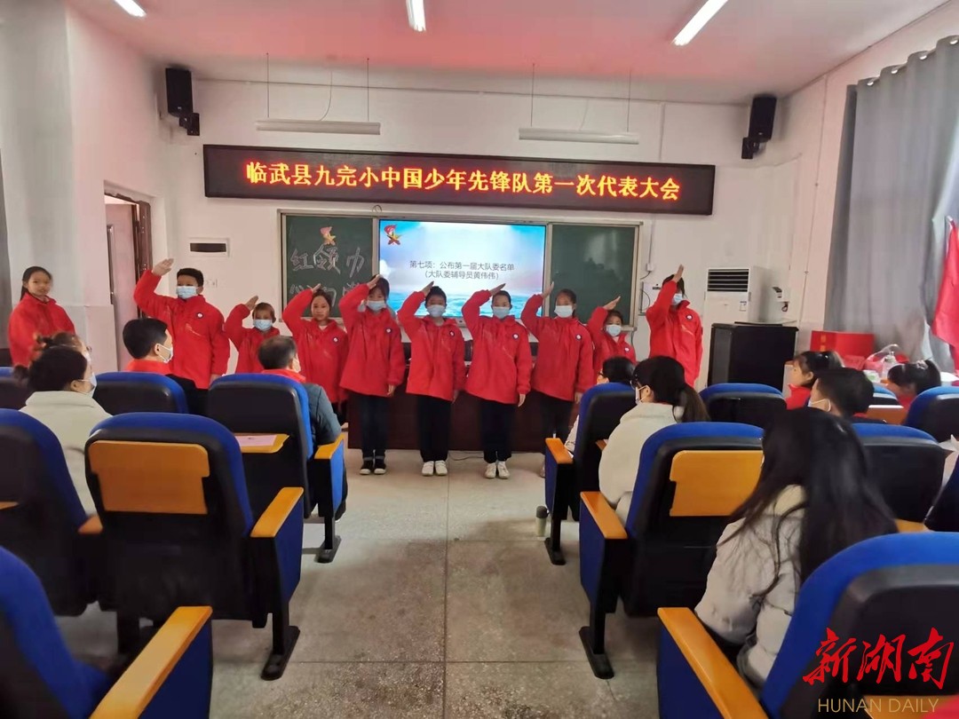 在嘹亮的呼号声与退旗曲中,本次少代会圆满落幕。大队长黄星源激动地说,一定肩负队员和老师们的嘱托,认真履行职责,为临武县第九完全小学的明天贡献力量。