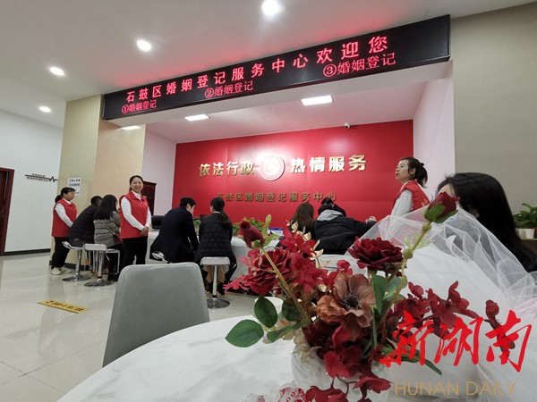 据统计,“为爱服务不打烊”婚姻登记志愿服务活动开展以来,衡阳市民政部门共为1000余对新人办理婚姻登记。