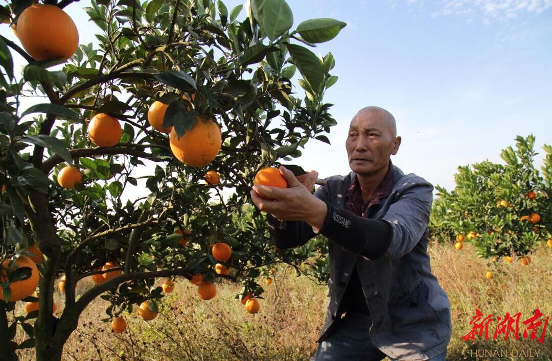 扒开枝条,朱元康数了数,一人多高的柑橘树上,已经结了30多个脐橙。他边忙碌边拉起家常:“许市生态好、气候佳,结出的脐橙大又甜,镇上正在申请国家地理商标认证,‘许市脐橙’已送到长沙、武汉人的果盘里。”