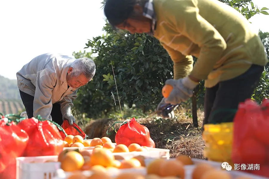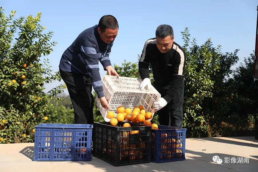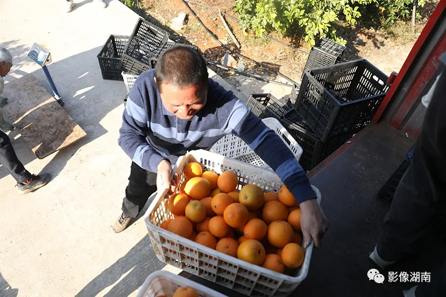 收脐橙、装箱、过秤、发快递……尹家氹自然村脐橙种植大户尹春茂和尹海峰两兄弟忙碌在丰收的喜悦中。尹春茂说:“我们这个脐橙维生素含量很高,甘甜汁多,线上线下销售量都非常好,好评率很高,有些顾客还特意开车专程来这里购买。”