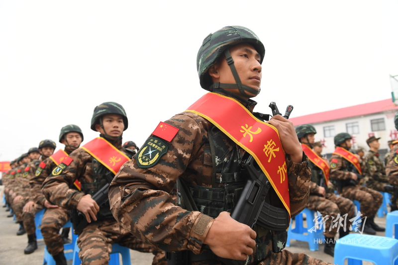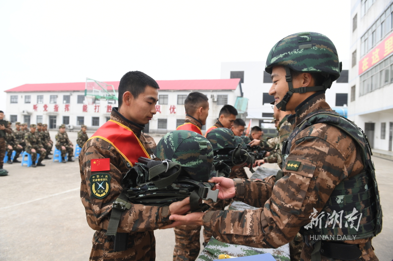 12月14日,新晋特战队员领取标志服饰及授枪。当天,武警湖南总队长沙支队举行特战队员入队仪式,17名新队员光荣加入特战队伍。湖南日报全媒体记者 辜鹏博 通讯员 舒醒 摄影报道