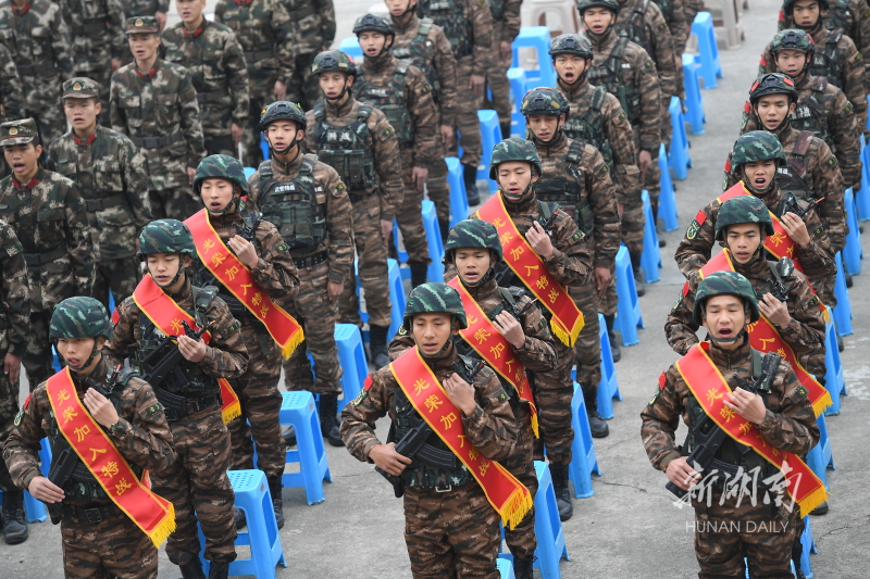 12月14日,新入队的特战队员宣誓。当天,武警湖南总队长沙支队举行特战队员入队仪式,17名新队员光荣加入特战队伍。湖南日报全媒体记者 辜鹏博 通讯员 舒醒 摄影报道