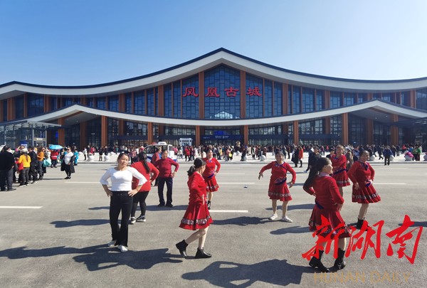 在站前广场上,广大凤凰市民群众自发性来到高铁站,在冬日暖阳里,唱歌跳舞、拍照留念……参观开阔壮观的高铁站,打卡凤凰“高颜值”新地标。在站内大厅里,众多游客市民们有序排队购买车票,趁着开通首日的喜庆日子,感受高铁的“速度与激情”。其中还有不少穿着苗族服饰的阿婆们,特意组队过来乘坐高铁,感受高铁的无穷魅力,来一次说走就走的高铁旅行“初体验”。