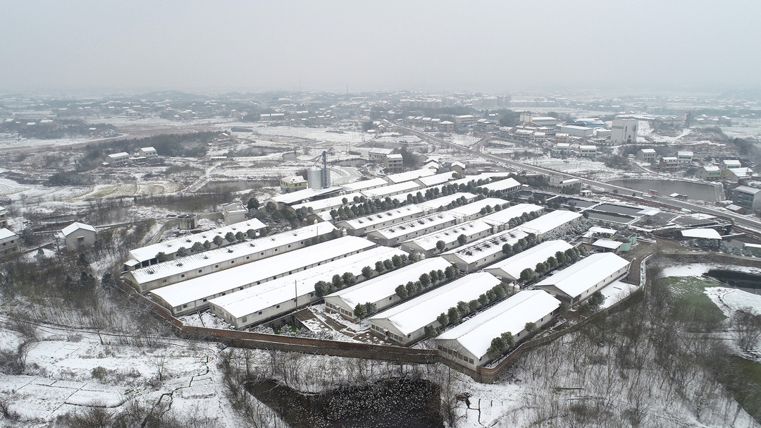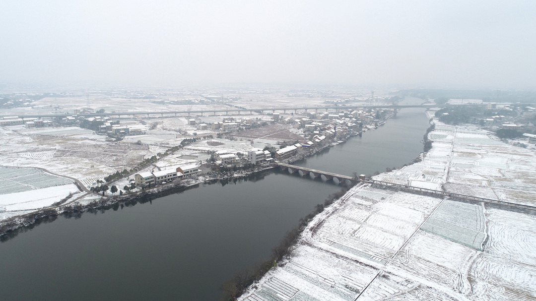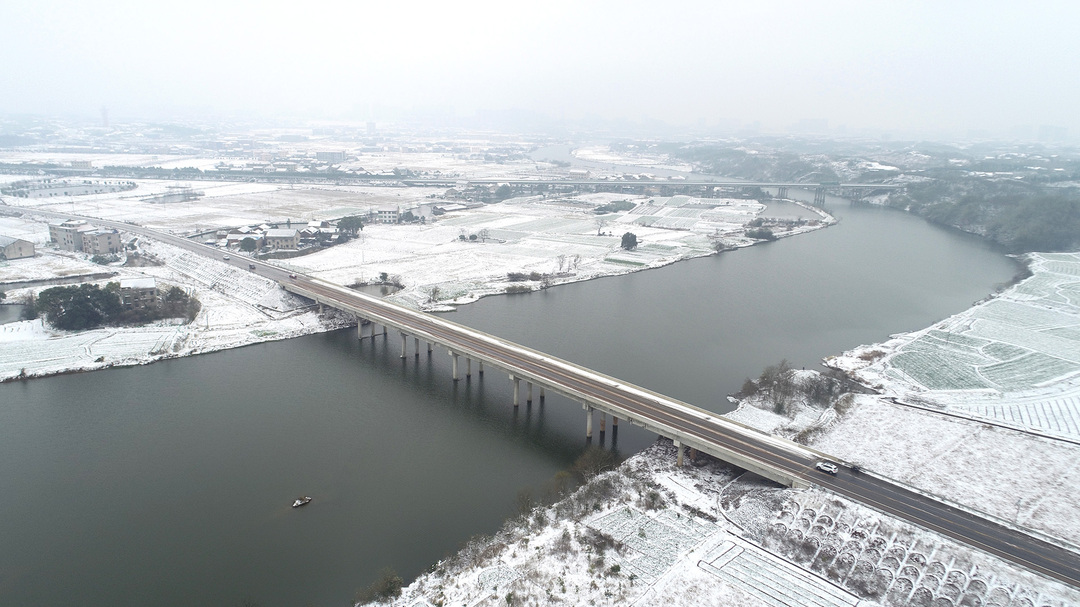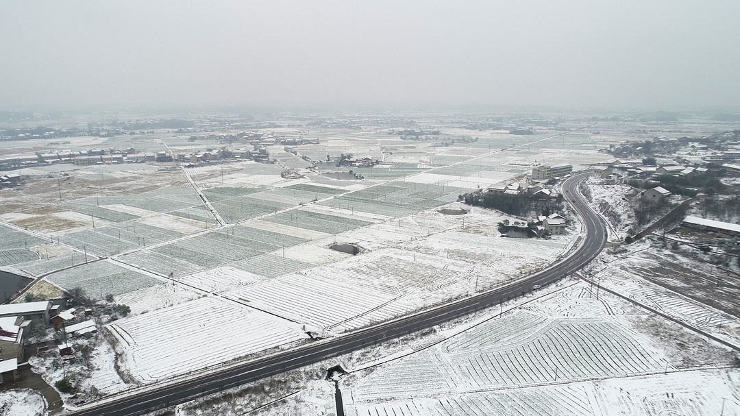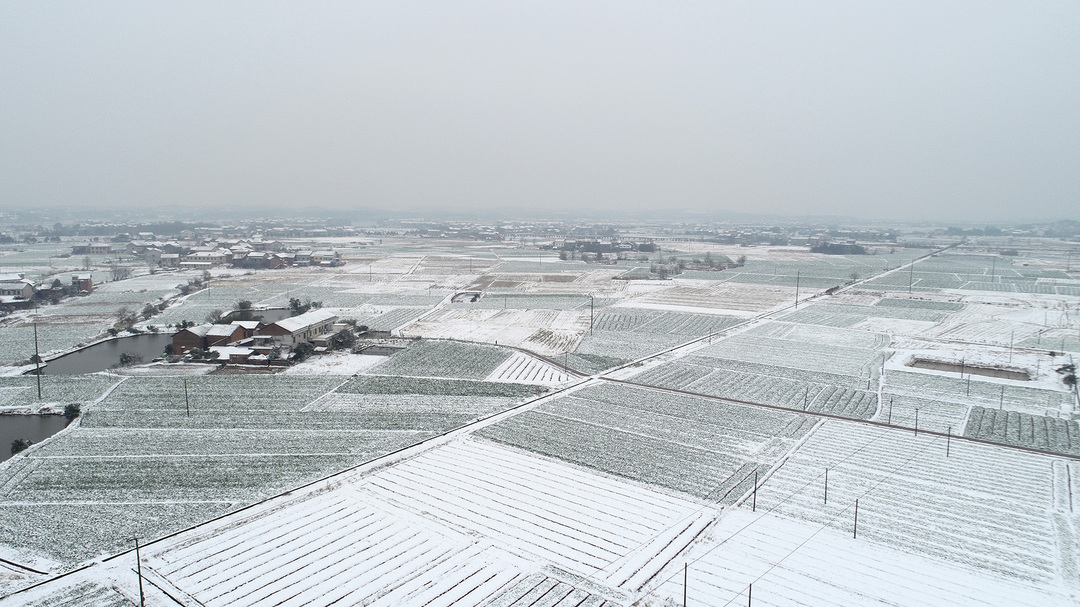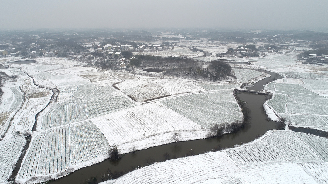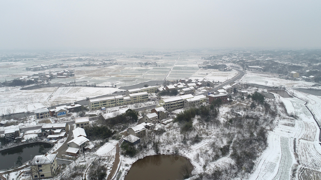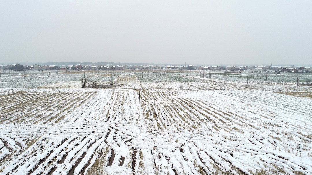 12月26日、27日,湖南省衡阳市衡阳县普降大雪,村庄、农田、山头被白雪覆盖,从高空俯瞰像一幅幅水墨画。