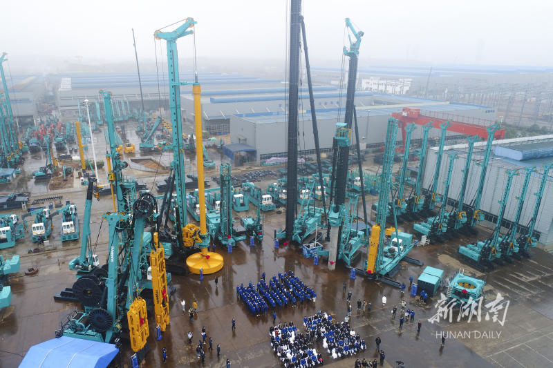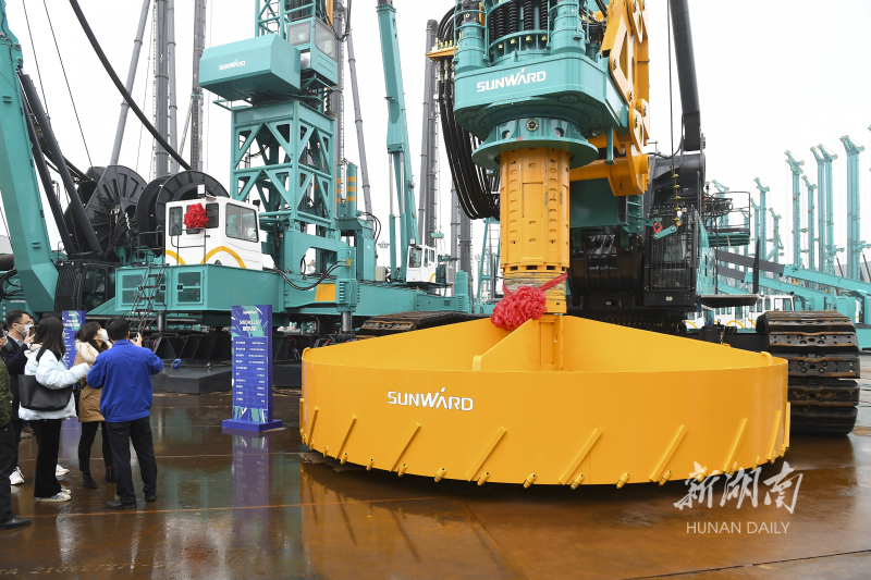 1月7日,山河智能举行地下工程装备全球发布会,集中发布8款地下工程“超级装备”,包括两大“世界之最”――世界最大旋挖钻机、世界最高液压履带桩架,以及两款“世界首创”装备――引孔式静力压桩机、大直径植桩钻机。湖南日报全媒体记者 辜鹏博 熊远帆 摄影报道