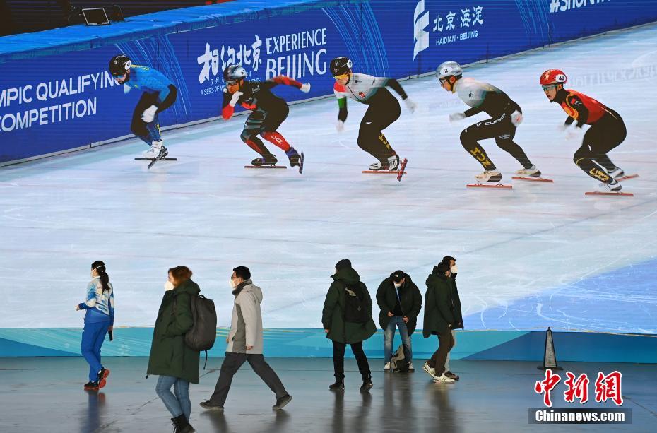 1月28日,媒体记者从主媒体中心内的大屏前经过。当日,2022年北京冬奥会和冬残奥会主媒体中心迎来媒体记者注册高峰。 中新社记者 毛建军 摄