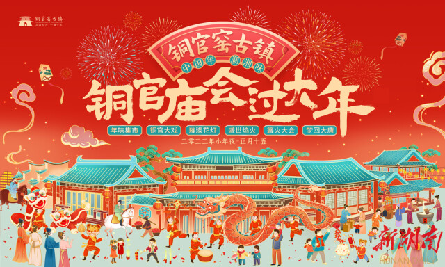 湖南日报·新湖南客户端1月31日讯(记者 王文)虎年春节至,新春出游旺。即日起至2月15日,长沙铜官窑古镇景区举行“中国年·湖湘味·铜官庙会过大年”主题活动,游客到古镇可逛传统庙会、品特色小吃、赏古镇花灯、观民俗演艺,重温传统民俗年。