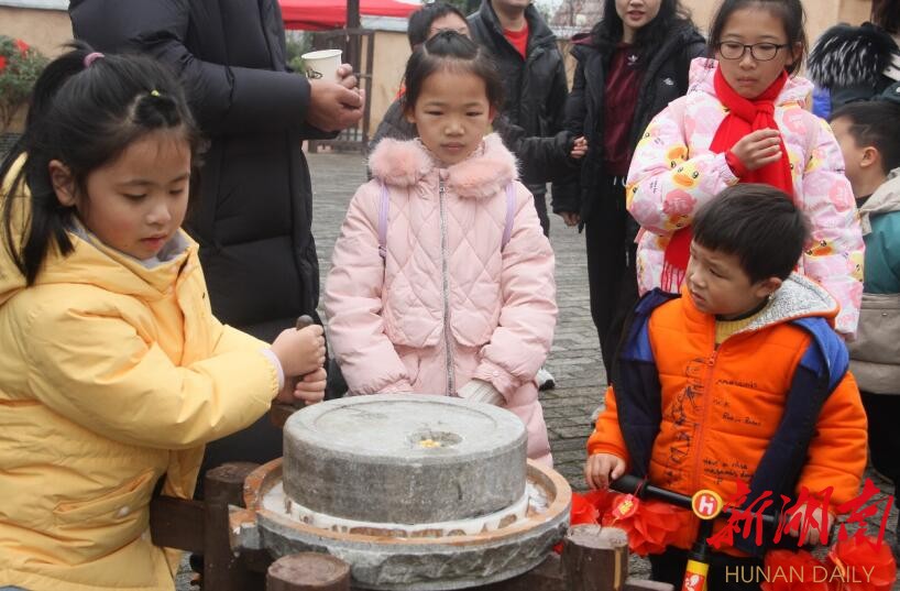 来自长沙的刘女士说:“我们还真没见过世面,一个打糍粑,我儿子玩着玩着就不愿让别的小朋友体验了,我们小时候过年也吃糍粑,但从来没打过糍粑,正好看到你们公众号推出的这些体验项目,就想过来玩一下。现在孩子们休息时间,除了看电视、玩手机,这些活动很少有机会能接触到,明年我们一家还要来玩!”