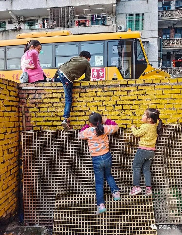 ▲永兴县便江北路,爬墙的小朋友。