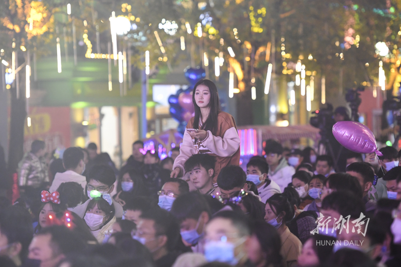 2021年12月31日晚,长沙市黄兴南路步行街北入口,行人川流不息,交通秩序井然。当晚是喜迎新年的跨年夜,长沙很多商场、店铺及景区精心组织举办了丰富多彩的迎新年活动,吸引了众多市民的参与。 湖南日报全媒体记者 田超 摄