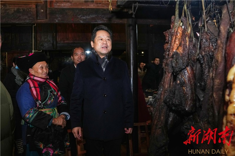 新湖南客户端1月27日讯(《团结报》全媒体记者 付丹)1月26日,农历腊月二十四,也是南方的小年,湘西土家族苗族自治州州委书记虢正贵来到花垣县双龙镇十八洞村村民施全富家中,与父老乡亲欢聚一堂吃年夜饭过小年。州委副书记、花垣县委书记廖良辉参加活动。