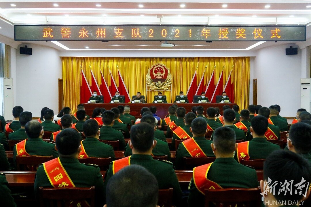 湖南日报·新湖南客户端1月24日讯(通讯员 尹广进 陈辉全)万众一心创辉煌,千帆竞渡争上游。1月21日,武警永州支队举行2021年度表彰大会,立功官兵家属受邀走上领奖台,见证军人荣耀时刻,增加了军属自豪感、幸福感。