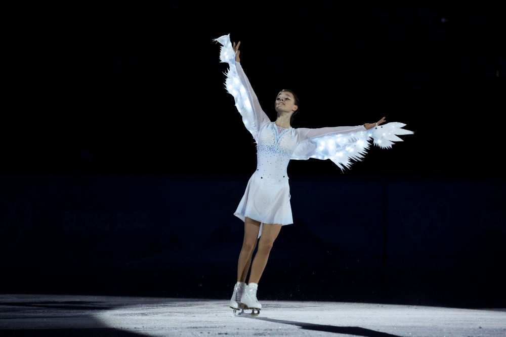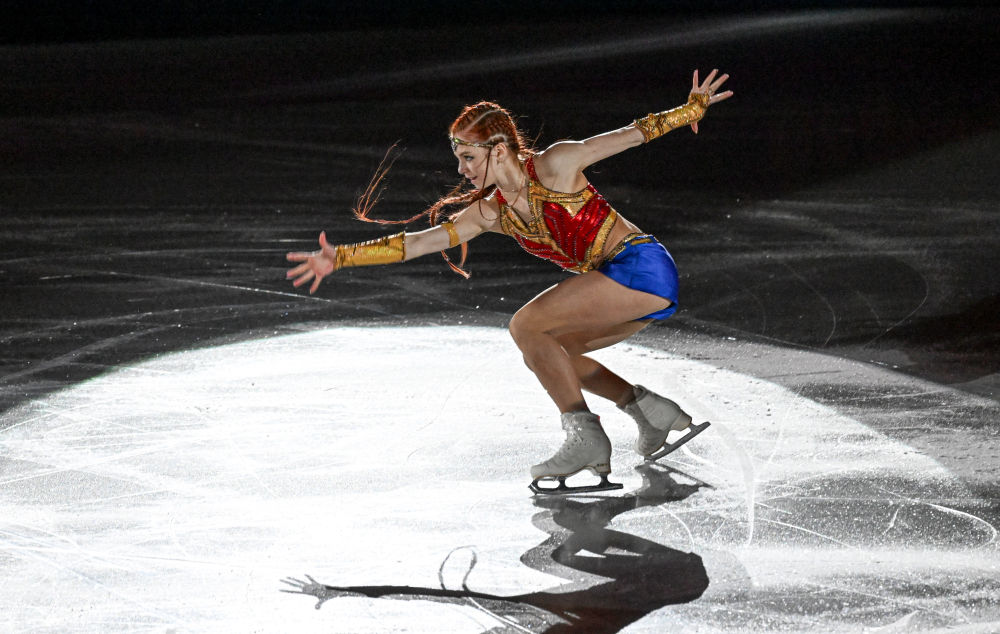 ↑2月20日,俄罗斯奥委会选手亚历山德拉·特鲁索娃在表演滑中。新华社记者 王菲 摄