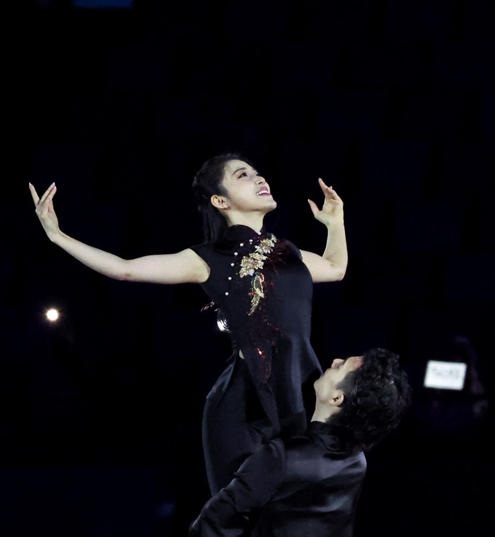 ↑中国选手隋文静(右)、韩聪在表演滑中。新华社记者 王菲 摄