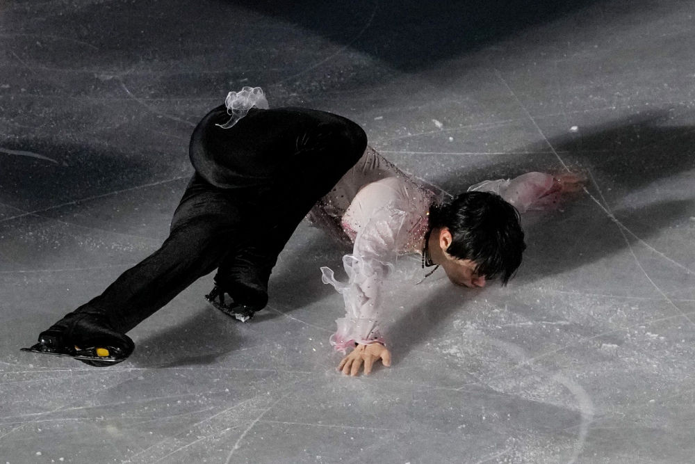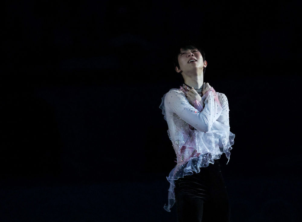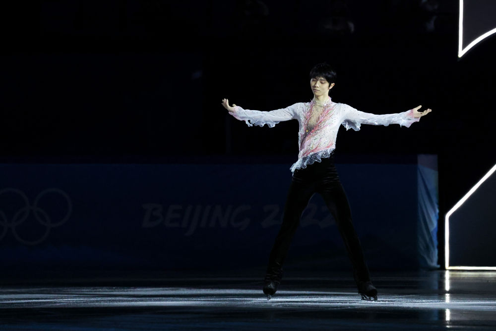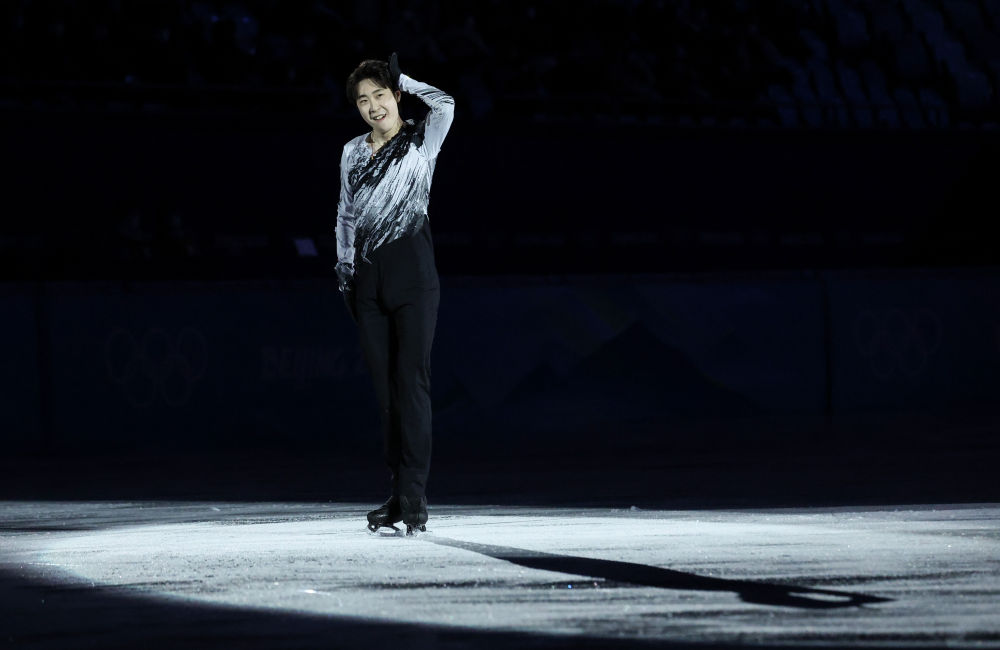 ↑2月20日,日本选手羽生结弦在表演滑中。新华社记者 张玉薇 摄