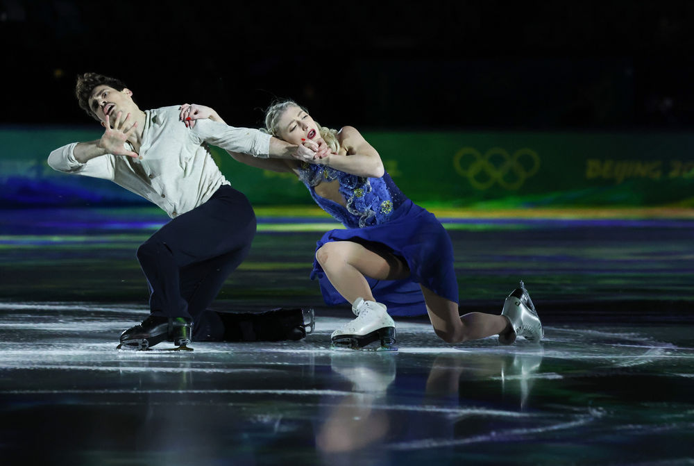 ↑2月20日,加拿大选手派珀·吉勒斯(右)和保罗·波里尔在表演滑中。新华社记者 张玉薇 摄