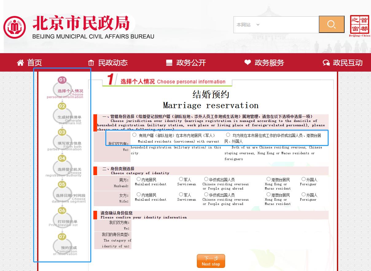 以北京市为例,新人可从北京市民政局官网搜索“婚姻登记”,进入“婚姻登记预约服务”界面,选择“结婚预约”,根据页面提示准确、完整填写相关信息,即可完成预约。此外,新人还可通过关注北京婚姻登记微信公众号进行预约。
