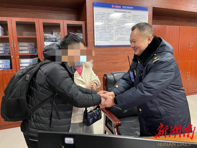 湖南日报·新湖南客户端2月3日讯(记者 成俊峰 通讯员 魏鑫子)2月3日11时30分许,衡阳东站值班站长潘国栋在接到客服中心通知,一名旅客在衡阳东站候车室遗失了一个黑色SK女士小挎包,内有现金3万多元过年红包,一部手机和身份证件及多张银行卡。