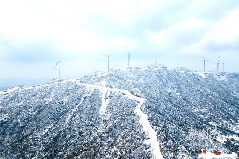 2月24日,雪后的双峰县紫云峰风电场银装素裹,美不胜收。近年,该县将风电开发与生态旅游有机结合,助力乡村振兴,实现生态保护和可持续发展。李建新 摄