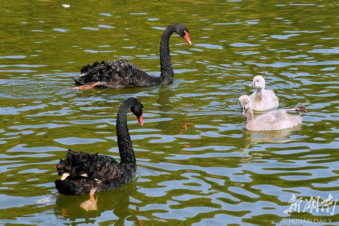 2月25日,长沙生态动物园,黑天鹅在水中觅食。湖南日报全媒体记者 徐行 摄