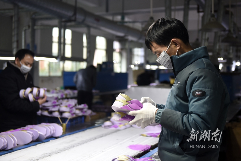 2月7日,道县高新技术产业园凯新鞋业公司,工人在车间忙碌。当天是春节假期后的首个工作日,当地企业纷纷开工生产,一派繁忙景象。蒋克青 何圣志 摄影报道