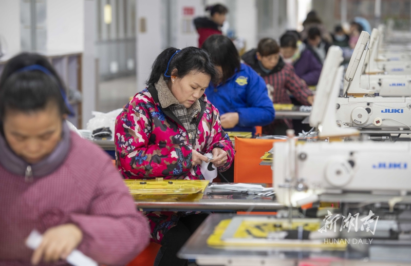 2月7日,道县广新运动用品有限公司,工人忙着生产出口海外的运动包。当天是春节假期后的首个工作日,该县许多企业订单充足,陆续开工恢复生产,工人们返回工作岗位,开足马力生产,抢抓虎年“开门红”。何红福 熊春明 摄影报道