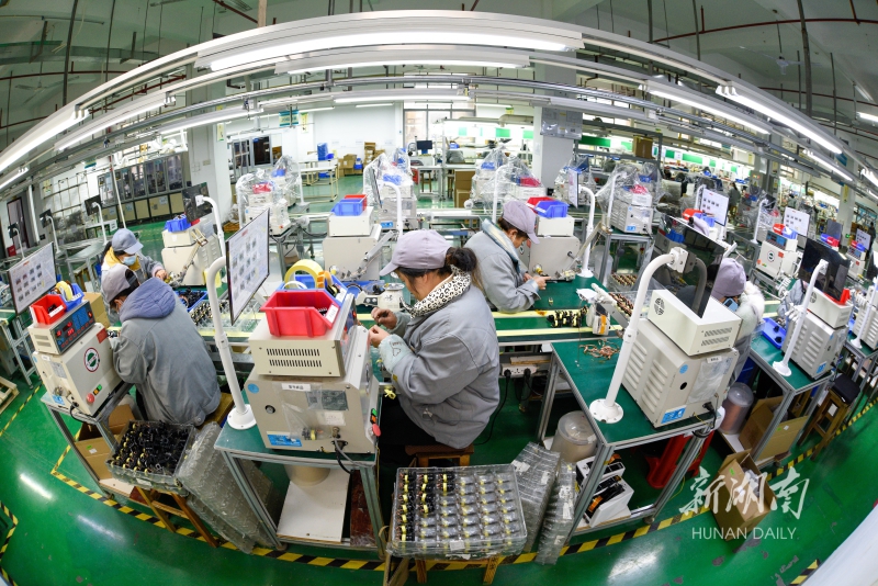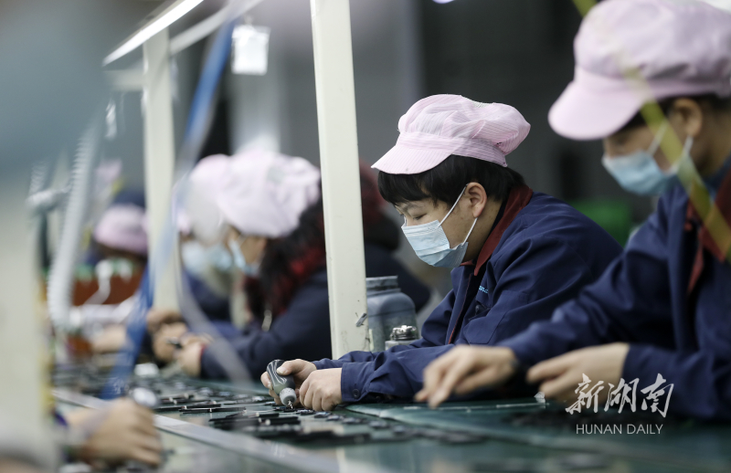 2月7日,资兴经开区一家耳机生产企业的工人在赶制出口订单产品。当天是春节假期后的首个工作日,该市各企业纷纷开工生产,抢抓 “开门红”,车间里呈现一片繁忙景象。李科 袁冰 摄影报道