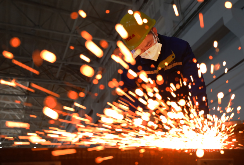 2月7日,衡阳市雁峰区特变电工衡阳变压器有限公司油箱车间,工人们在进行打磨作业。当天是春节假期后的首个工作日,该公司工作人员全员到岗,开足马力争取生产开门红。曹正平 马松伟 摄影报道