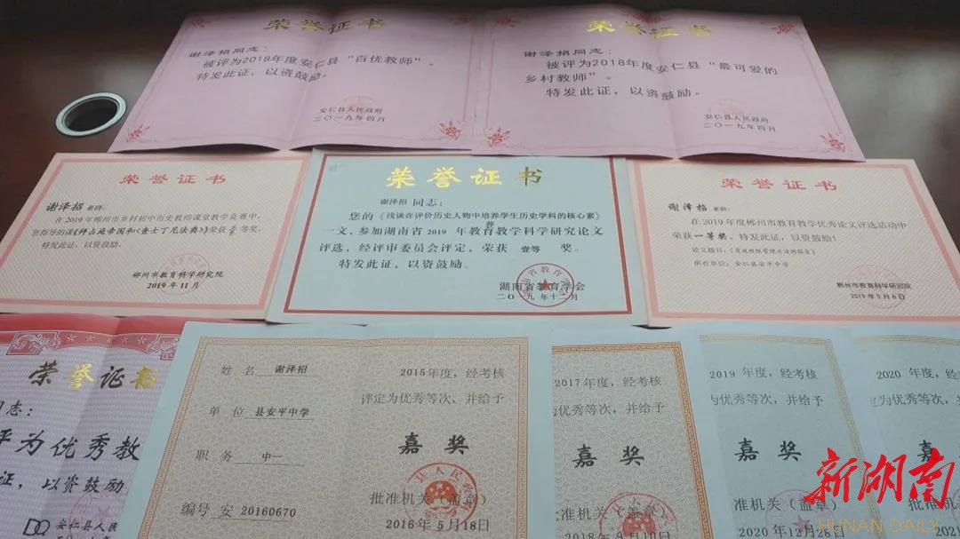 人物名片:谢泽招,1972年出生于湖南安仁,1994年到安平中学任教。他敬业奉献,深耕不辍,教学成绩优异,屡获嘉奖,深受学生、家长和同事称道。