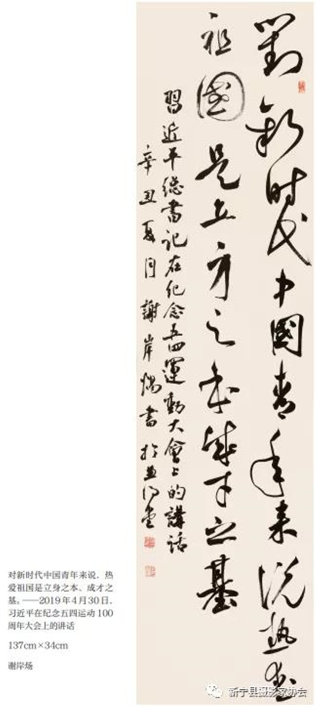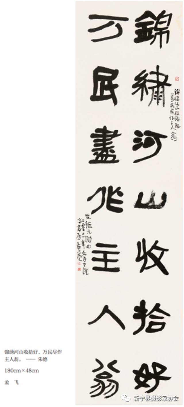 筹备与展览期间,得到了范晓亮、谢岸炀、孟飞、范斌彬4位书法家的大力支持,书写内容兼顾古今,有岳飞、文天祥等古代先贤的诗文,也有毛泽东、周恩来等老一辈无产阶级革命家的篇章,还精选了习近平总书记关于爱国主义的相关重要论述。文本创作形式体裁多样,篆隶草行楷五体兼备,八尺大作、尺幅小品,中堂对联条屏、扇面斗方和横幅相得益彰,作品主题集中、形式丰富,多维度展示了创作者的艺术思想与审美情趣,让人产生强烈的思想共鸣。