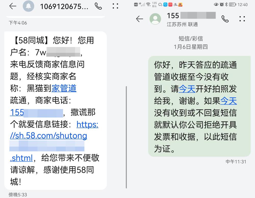 而相比沈女士,何先生花的这点钱可谓是“实惠”极了。同样是因为卫生间地漏堵塞,沈女士通过“58同城网”的本地服务页面,搜索挑选了一家名为“黑猫到家管道疏通”的商家,联系对方上门服务,平台显示其为6级“黄金商家”。电话中,商家称疏通只需花200元不到,“一口价”不会有额外的费用,且不通好不收费。