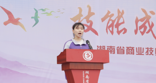 优秀学生代表——财经商贸系1923班周慧珍同学以“超越自我”为主题发言。她是2021年株洲市职业技能竞赛职业英语技能(服务类专业组)赛项的第一名获得者。在发言中,周慧珍不仅分享了自己参加比赛的心路历程,还号召全体同学要抓紧时间学习,学会充分利用时间,融入知识的海洋,学习专业技能,把握方向,成就更好的未来。
