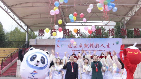 随后,湖南省商业技师学院社团表演冬奥会主题曲“一起向未来”手势舞,师生一起放飞梦想。“奋斗正当时,技能成就精彩人生”的誓言久久回荡在校园上空,飘荡在每位商院学子的心中。