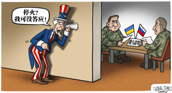 ▲全世界都希望俄乌早日重归和平,但美国却始终在“火上浇油”。 (漫画 | 刘蕊)
