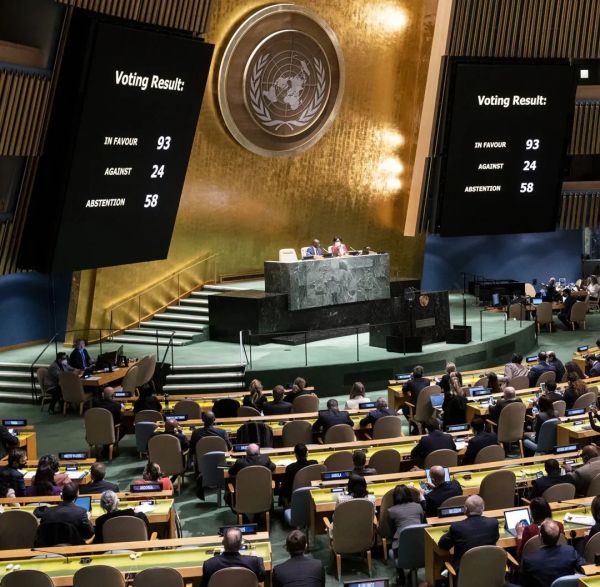 ▲2022年4月7日,联合国大会投票通过一项关于暂停俄罗斯在联合国人权理事会成员资格的决议。投票结果显示,82国投下反对或弃权票。