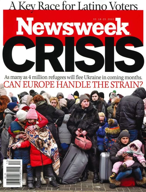 ▲2022年3月出版的美国《新闻周刊》封面文章指出,在接下来几个月将有400万乌克兰难民涌入欧洲,质疑欧洲是否有能力处理此次危机。