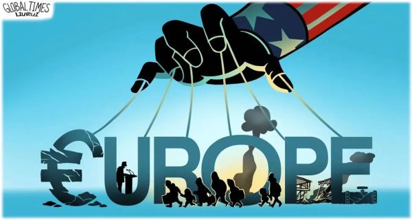 ▲欧洲在美国眼中,不过是其为维护自身霸权及利益而可操纵的“提线木偶”。 (漫画 | 刘蕊)