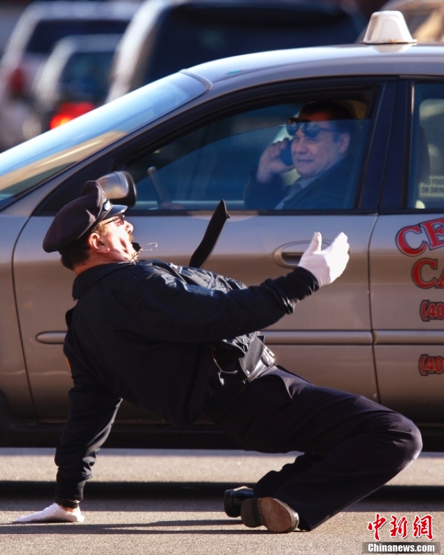 这张照片拍摄于2012年12月13日,美国普罗维登斯的莱波雷被称为“跳舞的警察”,在他充满活力和节奏的舞蹈中,车辆和行人有序通过十字路口。