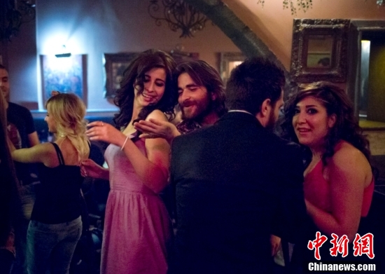 2013年10月的夜晚,叙利亚大马士革老城,年轻的叙利亚人在酒吧里尽情跳舞。大多数居住在大马士革的人都害怕地把自己锁在家里,而身穿紧身牛仔裤的年轻一代的叙利亚人却兴高采烈地听着当地的阿拉伯音乐,鼓掌、跳舞,屋外震耳欲聋的炮声。