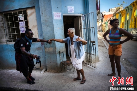 2020年1月15日,第35届哈瓦那爵士广场音乐节在古巴哈瓦那老城举行,一名游客在路上牵起一位当地老奶奶的手开始尽情舞蹈。