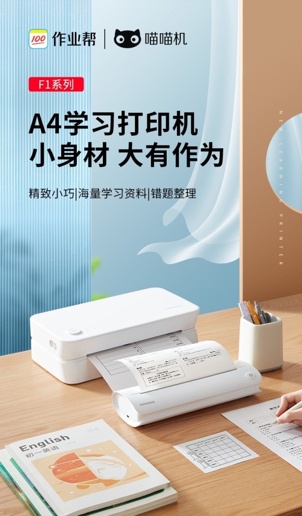 不同于传统打印机,作业帮喵喵机学习打印机F1在通过文档打印、扫描打印、远程打印等方式,帮助广大家长实现随时随地给孩子打印作业和试卷的同时,还利用自带的海量学习资料,打破了教育资源的地域限制,让大小城市的孩子都能够获得丰富且优质的学习资源。