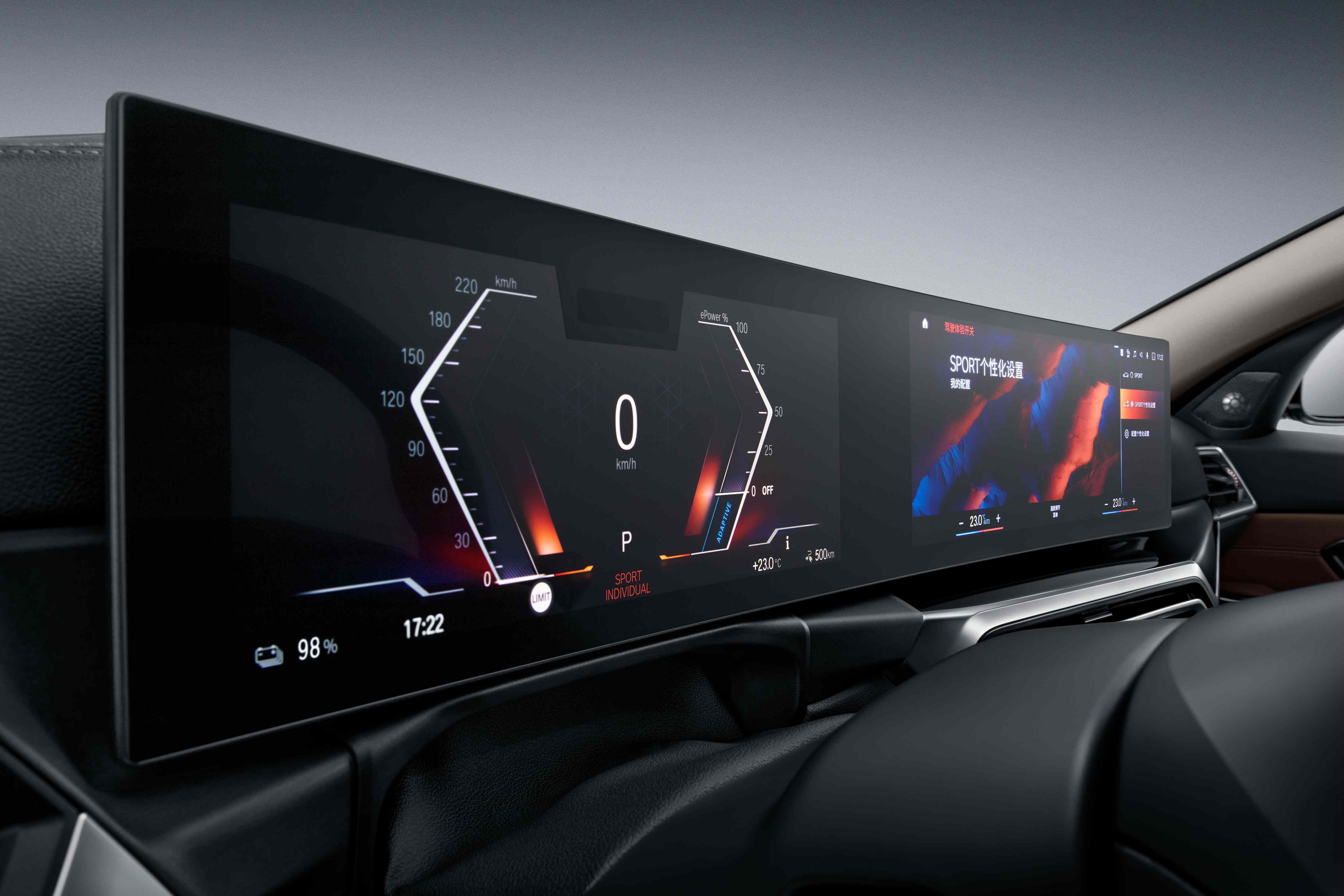 “功能岛”设计理念的焕新应用使物理按键大幅减少,传统挡把换装为精致小巧的拨杆,成功营造更加简洁大气驾驶舱氛围。新车还是华晨宝马首款采用全新BMW iDrive操作系统8.0、一体式悬浮曲面屏的车型,该屏幕集成了14.9英寸的触控显示屏和12.3英寸的数字仪表盘,并面向驾驶员微微倾斜,不仅为用户带来了极佳的数字化感官体验,还生动演绎了以驾驶员为导向的内饰设计理念。